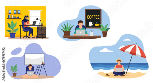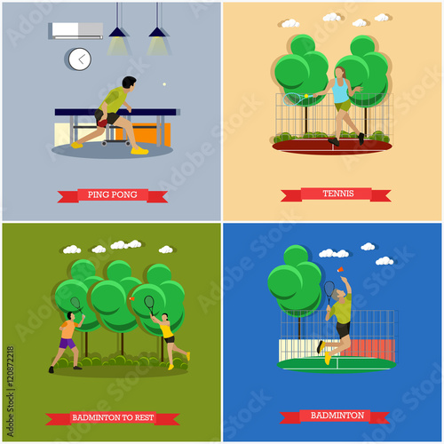 Векторный набор концептуальных плакатов, баннеров для зимних и водных видов спорта. Элементы дизайна в плоском стиле для синхронного плавания, биатлона, бобслея и прыжков в воду.