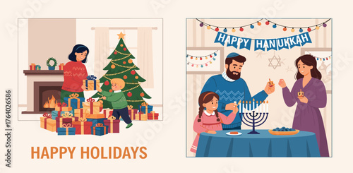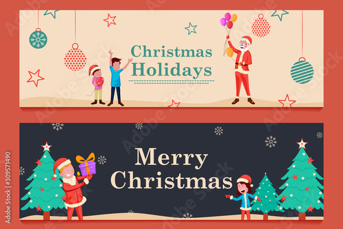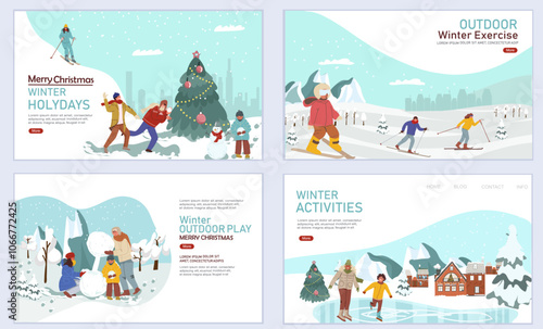 Векторный набор горизонтальных баннеров концепции зимних видов спорта и отдыха. Элементы дизайна сноуборда, катания на лыжах, катка в плоском стиле.