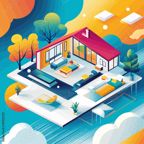 Векторная 3d-изометрическая иллюстрация смартфона с приложениями для умного дома. Интернет вещей, элемент концепции дизайна технологии "умный дом".