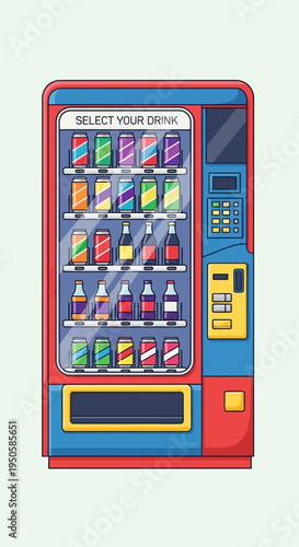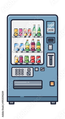 Векторная иллюстрация автомата по продаже закусок. Вид автомата спереди с кнопкой. Автомат, продающий чипсы, наггетсы, бисквит с крекерами, плитку шоколада, выделенный значок на белом фоне