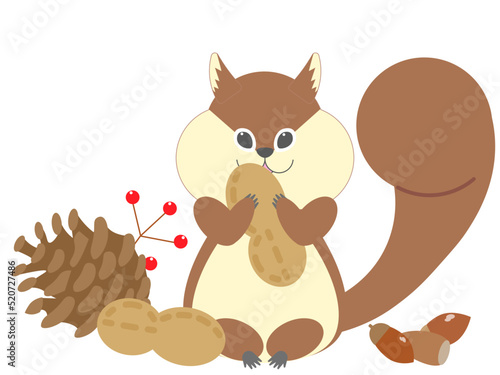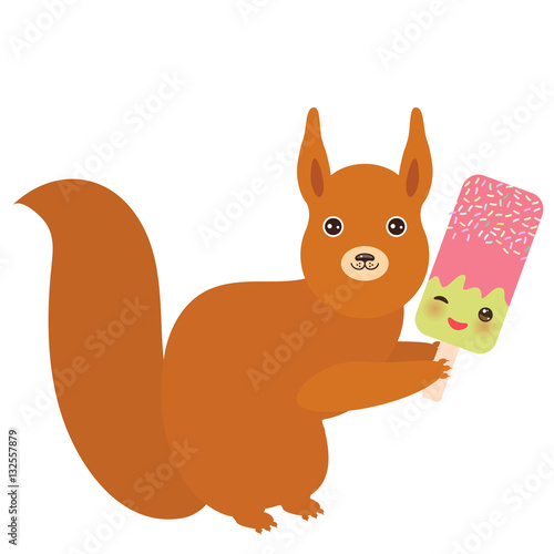 Векторное изображение животного с любовью. Милая белка, держащая в руках леденец с сердечком и цветочный значок. Милый счастливый персонаж для романтического оформления открыток на день святого Валентина, день рождения или свадьбу. Изолированный на белом фоне