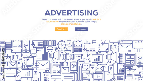 Шаблон баннера рекламного плаката аэропорта. Векторные иконки дизайна в плоском стиле с тонкими линиями для баннеров веб-сайтов и печатных материалов. Стойка регистрации, кафе, посадочный талон, эскалатор, зал ожидания и т.д.