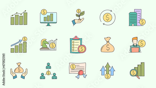 Векторный бесшовный узор с банковскими и финансовыми символами. Тонкая линия искусства плоский стиль дизайна банковских продуктов фон, обои.
