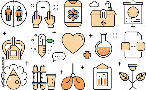 Набор иконок салона красоты. Векторные элементы дизайна в плоском стиле с тонкой линией, изолированные на белом фоне.