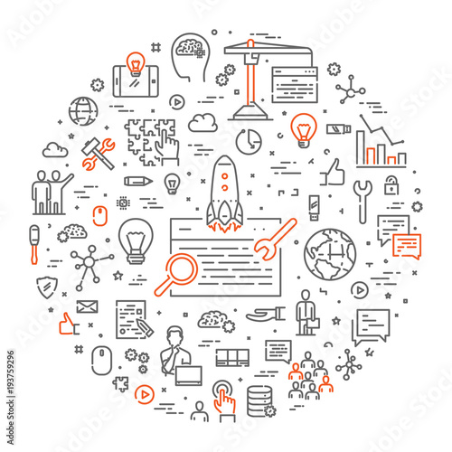 Шаблон баннера бизнес-плаката. Бизнес-вектор тонкая линия искусства плоские элементы дизайна стиля, иконки для веб-баннеров и печатных материалов.