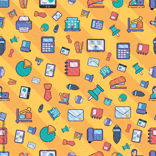 Векторный бесшовный узор с папками, портфелем, сейфом, достижениями, тайм-менеджментом и другими символами. Тонкая линия искусства плоский стиль дизайна бизнес-фон, обои.