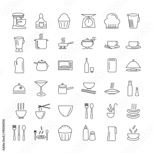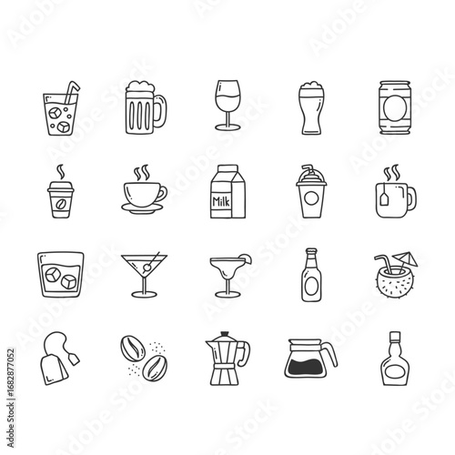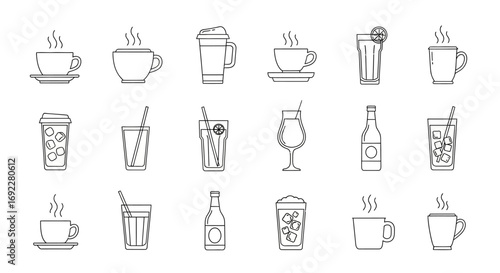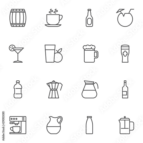 Векторный бесшовный узор с оборудованием и аксессуарами для приготовления кофе. Тонкая линия искусства плоский стиль дизайна кофе пивоварения фон, обои.