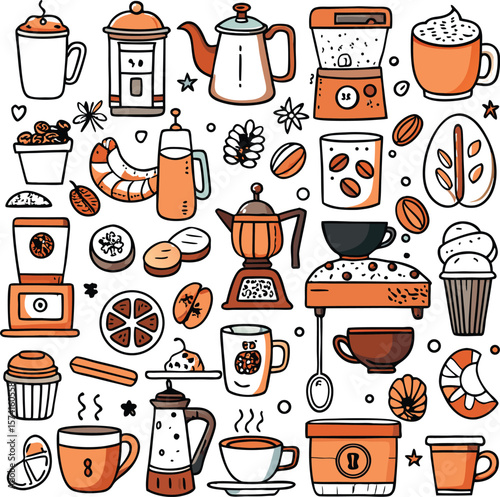 Векторный бесшовный узор с частным детективом, камерой, биноклем, пистолетом, табачной трубкой, шляпой, перчаткой, отпечатками обуви, отпечатками пальцев и т.д. Тонкая линия искусства плоский стиль дизайна детектив фоновые обои.