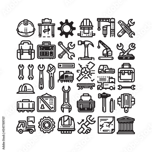 Набор значков экологической фабрики и альтернативной энергетики. Векторные элементы дизайна в плоском стиле с тонкой линией, изолированные на белом фоне.