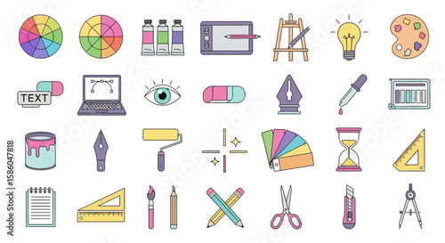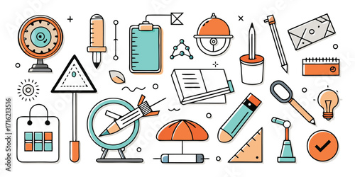 Векторный бесшовный узор с инженерными измерительными инструментами и приборами. Тонкая линия искусства плоский стиль дизайн инженер фон, обои.