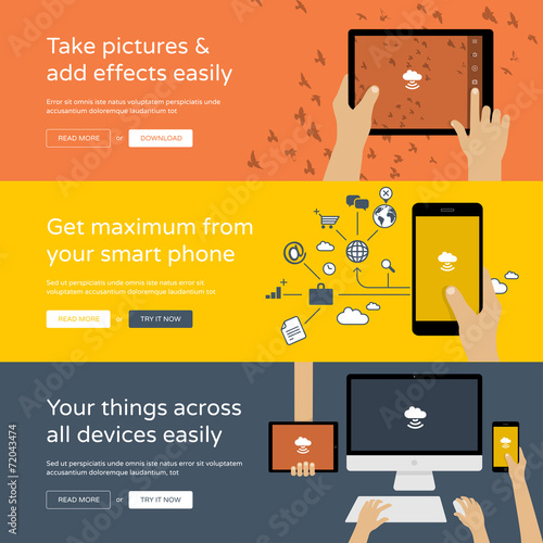 Набор шаблонов векторных веб-баннеров информационных технологий. IT, Программист и ментальный шторм концепт тонкая линия арт плоский стиль элементы дизайна.