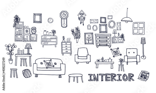 Шаблон баннера плаката в форме подвесной лампы. Интерьер гостиной с векторной мебелью, элементы дизайна в плоском стиле, иконки для веб-баннеров и печатных материалов.