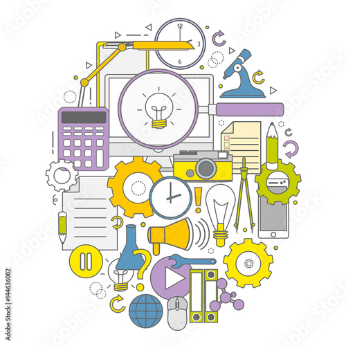 Шаблон баннера векторного плаката в форме аудиодиска. Радиостанция вещает музыкальные новости. Тонкие линии художественных плоских иконок для веб-баннеров, печатных материалов.