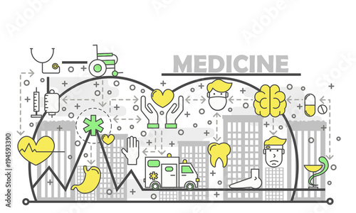 Шаблон баннера векторного плаката рэп-музыки. Певица хип-хоп музыки с аксессуарами цепочка очки часы шапочка для обуви ретро автомобиль громкоговорители микрофон и т.д. Тонкие линии художественных плоских иконок для Интернета, печатных материалов.