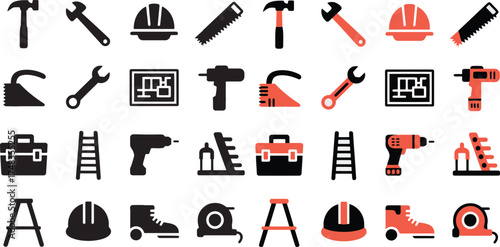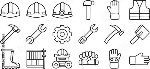 Векторный бесшовный узор с ручными рабочими инструментами для строительства, ремонта дома, реконструкции. Тонкая линия искусства плоский стиль дизайн ремонт фон, обои.