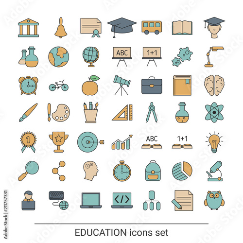 Векторный бесшовный узор со школьными предметами. Тонкая линия искусства плоский стиль дизайна школьный фон, обои.