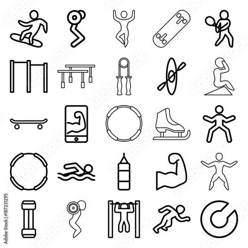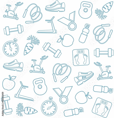 Векторный бесшовный узор со спортивными значками. Тонкая линия искусства плоский стиль дизайн фона, обои.