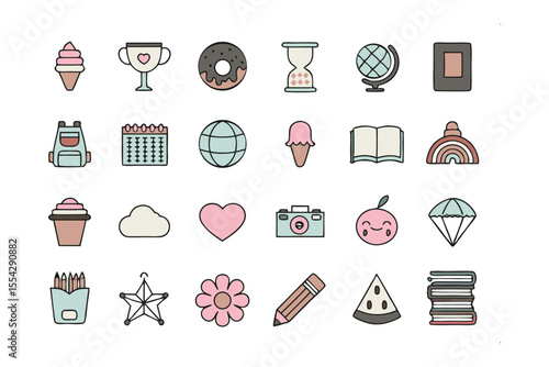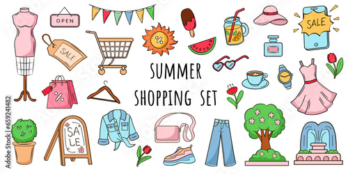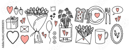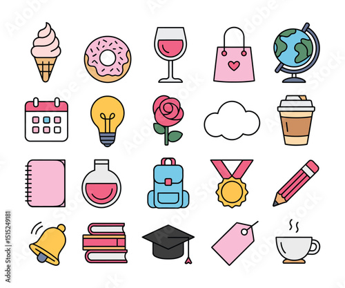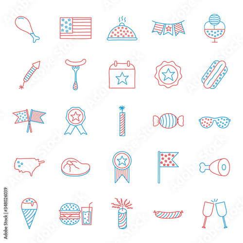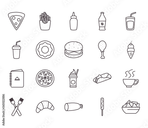 Векторный бесшовный узор с хот-догом, картофелем фри, бургером, мороженым, безалкогольными напитками, кофе, фуд-траком и т.д. Тонкая линия искусства плоский стиль дизайна уличной еды фон, обои.
