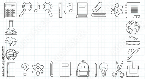 Шаблон баннера рекламного плаката стоматолога. Зуб, имплантат, зубная паста, зубная щетка, стоматологическое оборудование. Векторные элементы дизайна в плоском стиле с тонкой линией, иконки для баннера веб-сайта, печатные материалы.