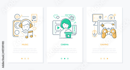 Векторный набор горизонтальных баннеров концепции социальной безопасности. Современные тонкие линии плоских элементов дизайна, иконки для веба, маркетинга, презентации и печати.
