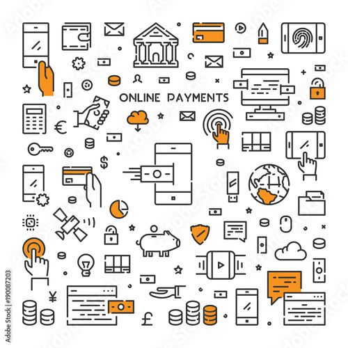 Векторный набор баннеров с концепциями технологий и науки. Линейные схемы. Тонкие линии плоского дизайна, инфографические элементы, иконки для Интернета, презентаций и печати.
