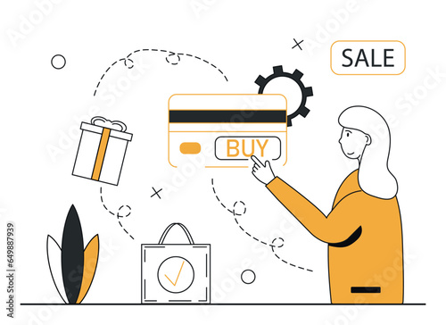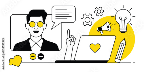 Векторная веб-разработка, баннер концепции программирования. Цифровые устройства, программист, создающий веб-сайт, пишущий компьютерное программное обеспечение, мобильные приложения. Символы и значки плоского дизайна тонкой линии для Интернета, печати