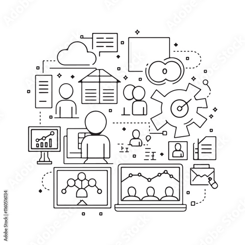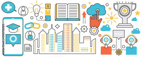 Шаблон баннера плаката в форме речевого пузыря. Радио, интернет, мобильные устройства, социальные медиа векторная тонкая линия искусства плоские элементы дизайна стиля, иконки для баннеров веб-сайтов и печатных материалов.