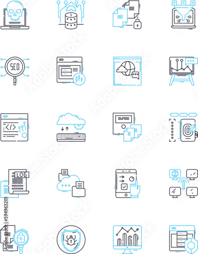 Векторный бесшовный узор с онлайн-магазинами, электронной коммерцией, символами мобильных платежей, элементами дизайна. Тонкая линия искусства плоский стиль дизайна мобильного банкинга фон, обои.