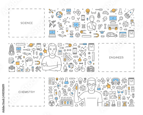 Планирование шаблона баннера рекламного плаката. Творческая идея, вдохновение, концепция бизнес-видения. Векторные элементы дизайна в плоском стиле с тонкими линиями, иконки для баннеров веб-сайтов и печатных материалов.