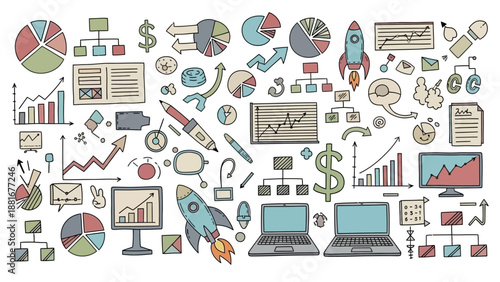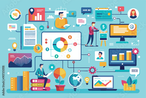 Шаблон баннера плаката успеха в бизнесе. Векторный дизайн в плоском стиле с тонкими линиями с офисными работниками, забавными персонажами мультфильмов, бизнес-символами, значками для баннеров веб-сайта и печатных материалов.