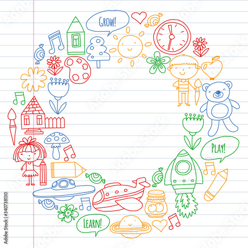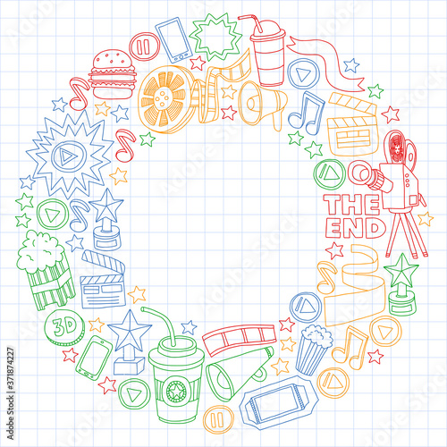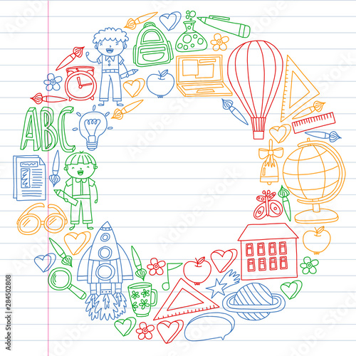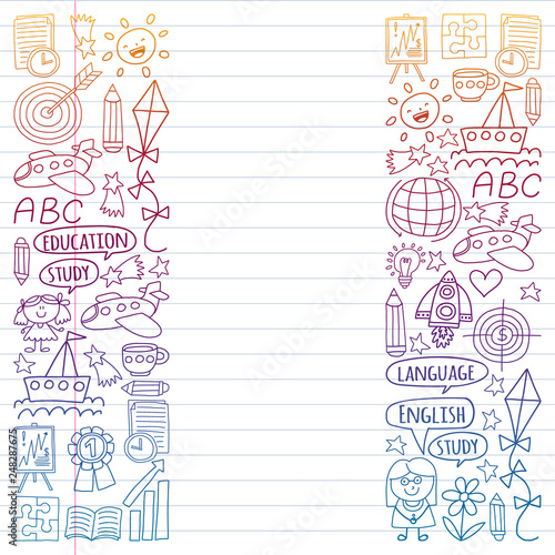 Шаблон плаката-баннера в форме обуви на высоком каблуке. Праздничный торт, цветы, подарки, шампанское, воздушные шары и т.д. Векторные элементы дизайна в плоском стиле с тонкими линиями, иконки для баннеров веб-сайтов и печатных материалов.
