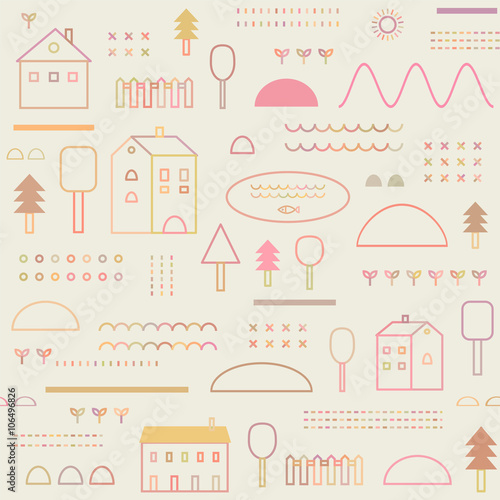 Шаблон баннера рекламного плаката женского дня. Праздничный торт, цветы, подарки, шампанское, воздушные шары и т.д. Векторные элементы дизайна в плоском стиле с тонкими линиями, иконки для баннеров веб-сайтов и печатных материалов.
