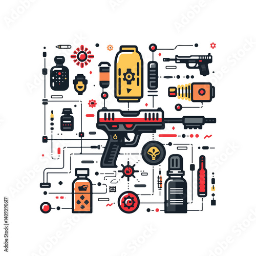 Векторный набор инструментов для пайки микросхем, микросхем, материнской платы. Элементы дизайна в плоском стиле.