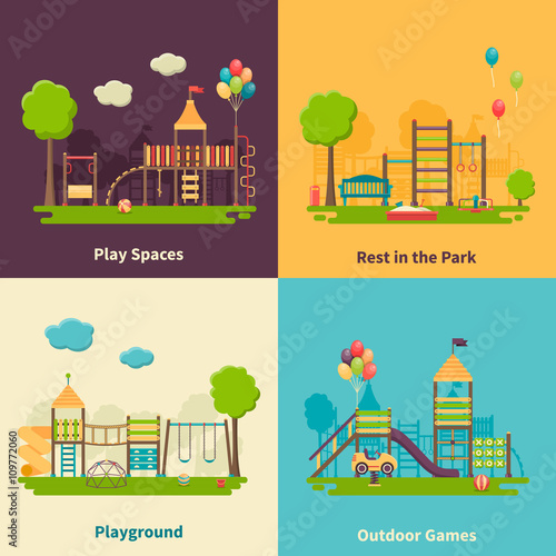 Векторный туристический плакат, набор баннеров с путешественниками, отправляющимися в поход, кемпинг, осмотр достопримечательностей, покупающими сувениры, машущими водителю такси. Дизайн в плоском стиле.
