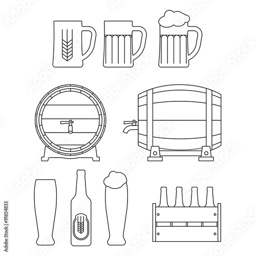 Векторный набор символов винтажного пива, иконки, изолированные на белом фоне. Черные шаблоны для логотипов и печати.