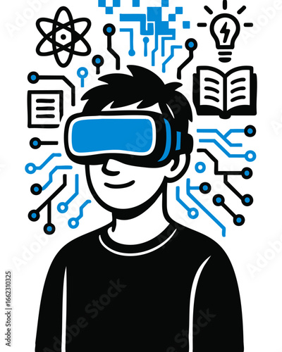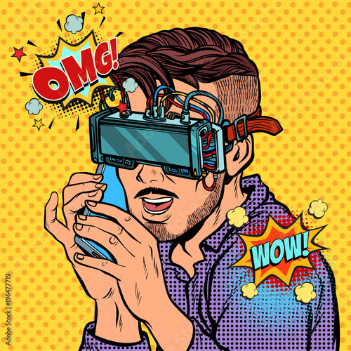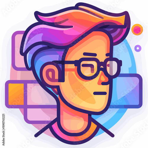 Векторная иллюстрация мальчика в очках с жестом указательного пальца вверх, жестом руки, пузырьком мыслей в стиле комиксов ретро-поп-арта.
