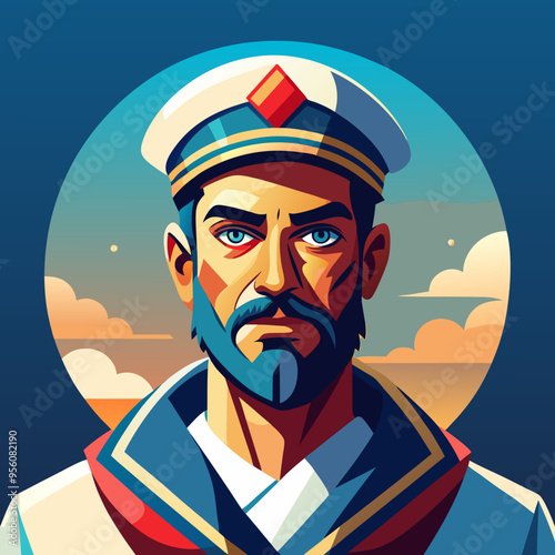 Векторная иллюстрация красивого моряка, отдающего честь, подумал пузырь. Моряк, моряк в стиле комиксов ретро-поп-арта.
