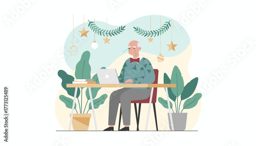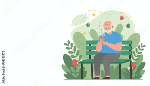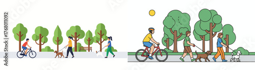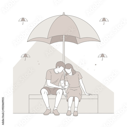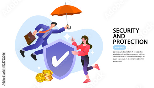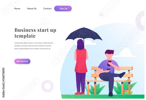 Векторная иллюстрация концепции уличного кафе в плоском стиле. Элемент дизайна веранды с официантом, обслуживающим женщину, сидящую за столом под зонтиком.