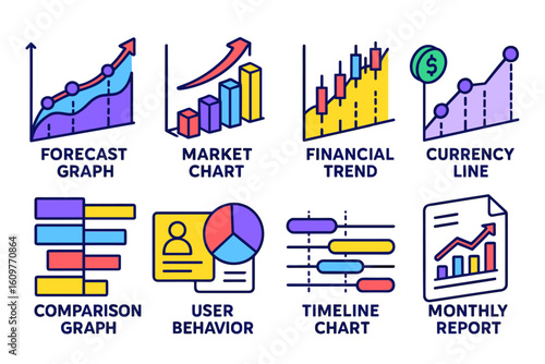 Набор векторных значков аттракционов аквапарка с различными типами горок, бассейнов, колеса обозрения, джакузи, фонтанов, зон отдыха и детских площадок. Плоские изометрические элементы дизайна аквапарка.