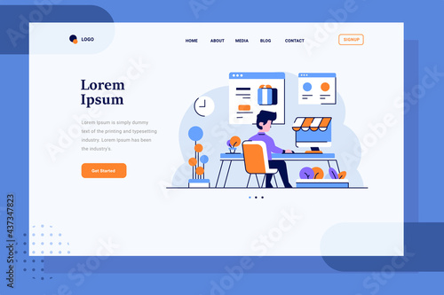 Векторный шаблон дизайна веб-сайта. Разработка нового продукта, идея создания. Команда в офисе. Концепции целевых страниц для разработки веб-сайтов и мобильных устройств. Современная плоская иллюстрация