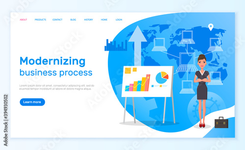 Векторный шаблон дизайна веб-сайта. Панель управления проектами. Общение в деловой команде. Концепции целевых страниц для разработки веб-сайтов и мобильных устройств. Современная плоская иллюстрация.