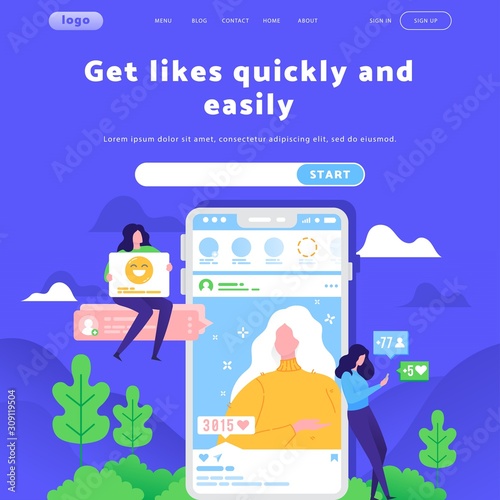 Векторный шаблон дизайна веб-сайта. Каркас мобильного приложения для социальных сетей. Концепции целевых страниц для мобильной разработки веб-сайтов. Современная плоская иллюстрация.