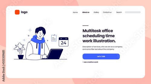 Векторный шаблон дизайна веб-сайта. Разработка программного обеспечения, работа программиста за ноутбуком. Концепции целевых страниц для разработки веб-сайтов и мобильных устройств. Современная плоская иллюстрация