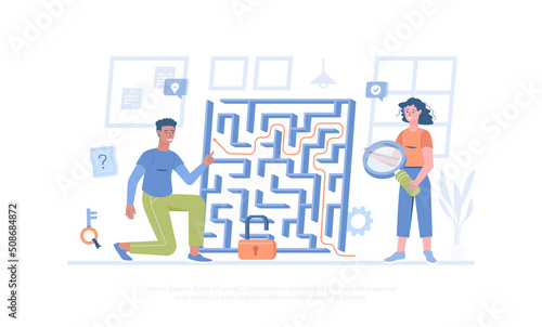 Векторный шаблон дизайна веб-сайта. Разработка программного проекта. Команда программистов работает вместе. Концепции целевых страниц для разработки веб-сайтов и мобильных устройств. Современная плоская иллюстрация.