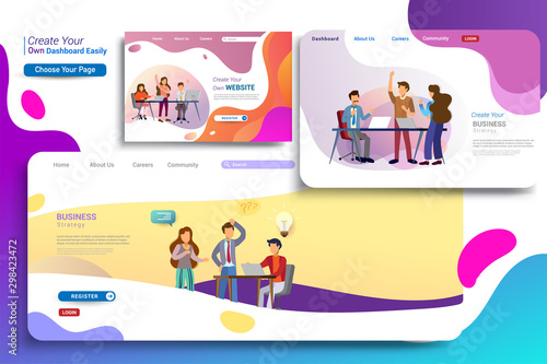 Векторный шаблон градиентного дизайна веб-сайта. Финансовый отчет и презентация. Деловая встреча. Концепции целевых страниц для разработки веб-сайтов и мобильных устройств. Современная плоская иллюстрация