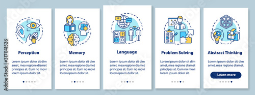 Векторный веб-сайт linear art onboarding screens template. Технологии будущего. Связь мозга с ИИ, солнечные источники энергии, сельское хозяйство и биология. Баннеры меню для разработки сайтов и мобильных приложений