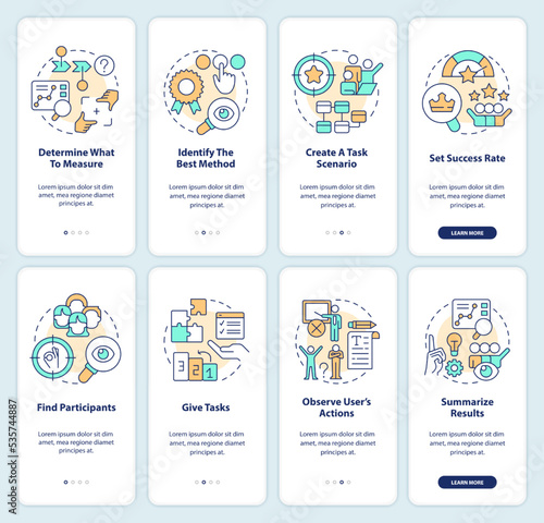 Векторный веб-сайт linear art onboarding screens template. Знания, любознательность, интеллект и креативность. Баннеры меню для разработки сайтов и мобильных приложений