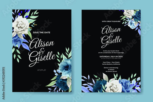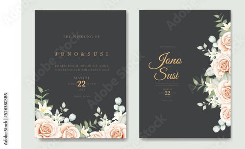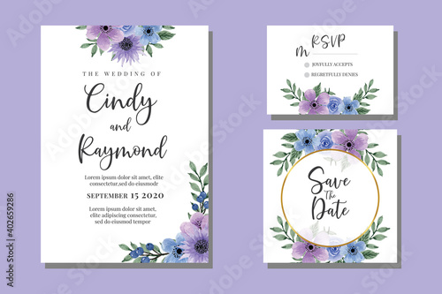 Векторная иллюстрация приглашения на свадьбу, поздравительная открытка с белым пионом и цветами незабудки. Набор изолированных основных частей бутона, цветка, стебля и листа растения.