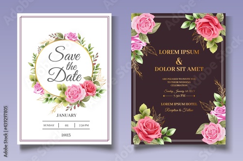 Векторная иллюстрация приглашения на свадьбу, поздравительная открытка с цветами пиона. Набор изолированных основных частей бутона, цветка, стебля и листа пиона.