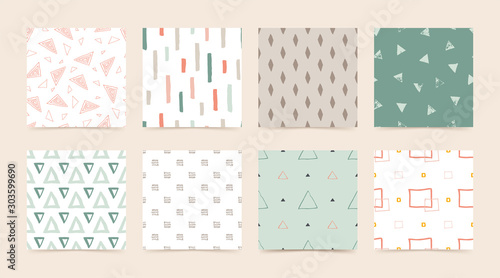 Белая заготовка и милый комплект постельного белья из альпаки. Три бесшовных узора для образцов ткани детского постельного белья с забавными мультяшными альпаками. Векторная иллюстрация с видом сверху.